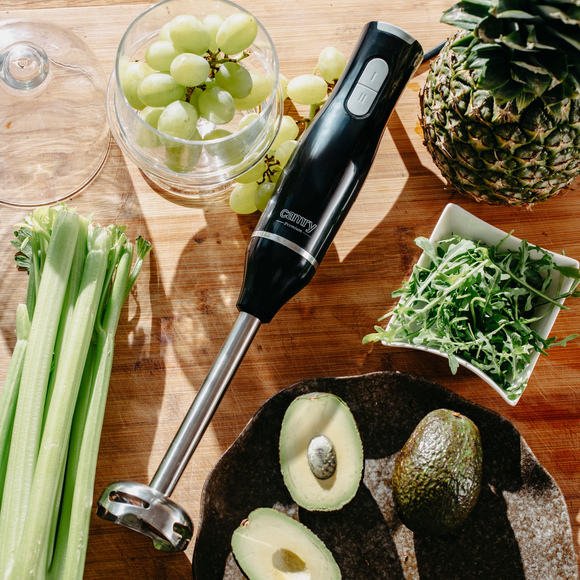 With two speed settings, the blender can be adjusted to suit different types of ingredients. The stainless steel blending attachment is suitable for both cold and hot preparations, such as soups or sauces.
