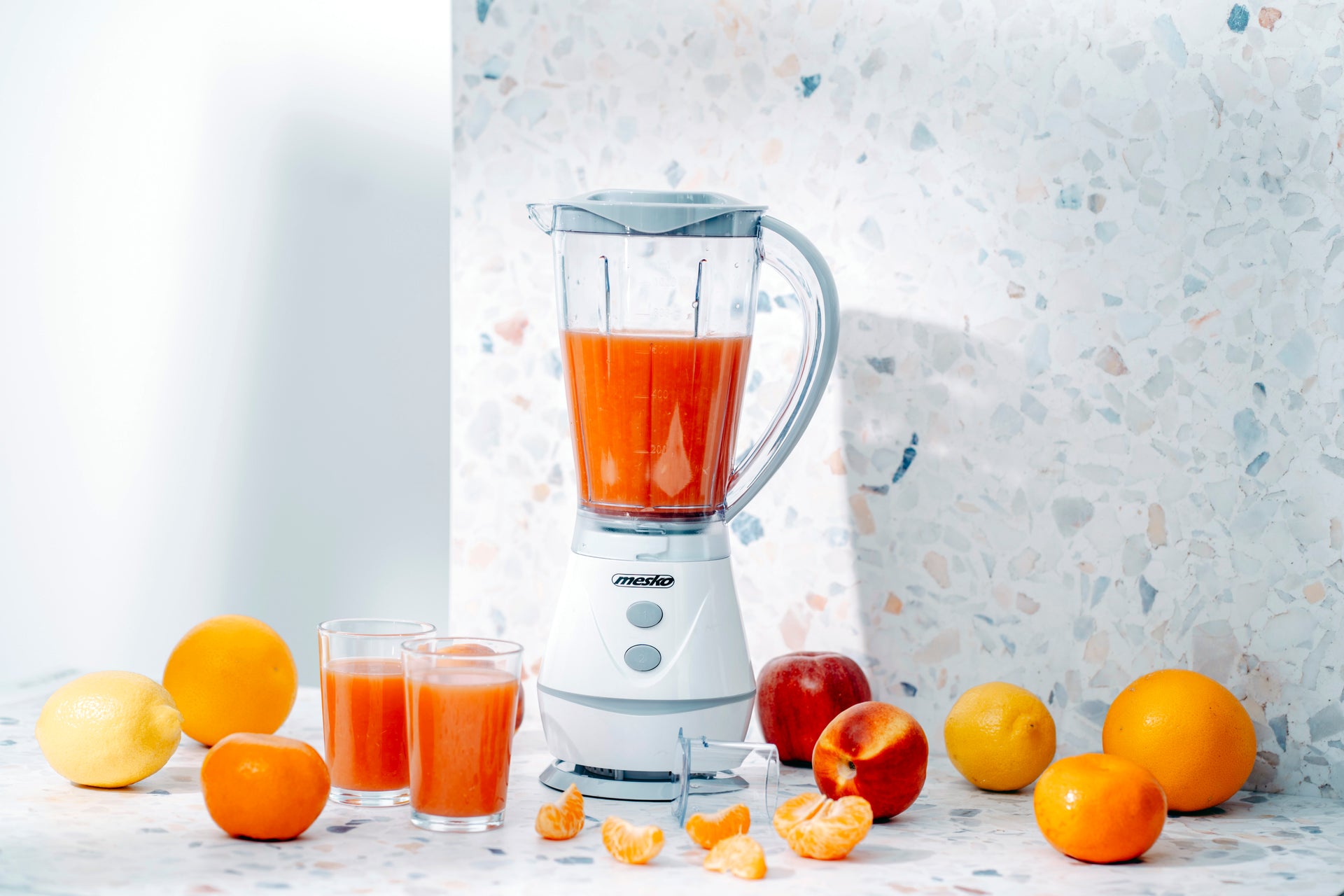 The Mesko MS 4060G is a compact blender designed for preparing blended mixtures such as cocktails or pie fillings. It operates with a 250W energy-efficient DC motor that supports low-noise performance. The device includes a 1L plastic jar and stainless steel blades suitable for blending various ingredients. It features two speed settings for different preparation needs. The ergonomic handle provides a secure grip during use, and the lightweight construction allows for easy handling and storage.